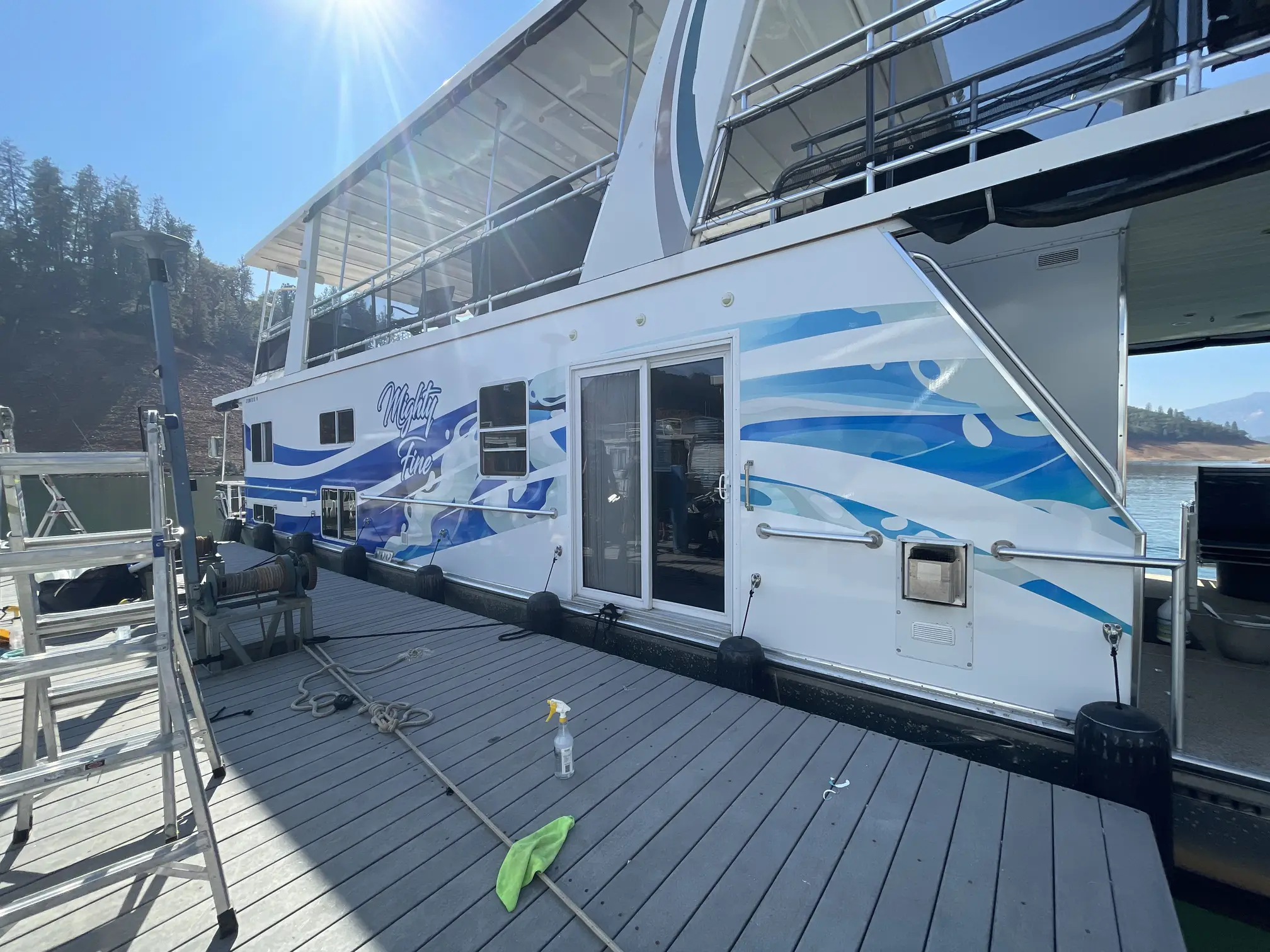 Caring for boat graphics is similar to caring for a car wrap, with a couple of marine-specific notes. We recommend washing with a mild soap (boat soap or car soap) and a soft cloth or sponge. You can use a soft brush on larger areas, just ensure it’s not a stiff bristle that could scratch the laminate. Power washers can be used carefully – keep the nozzle at least 2 feet away and don’t go too aggressive on edges or seams. Actually, many people successfully power wash their wraps; just avoid a super narrow nozzle setting right up close. For removing algae or scum near the waterline: there are hull cleaner products, but some are acidic – you should avoid strong acids on the vinyl as they could stain or dull it. Instead, using a gentle boat cleaner or even a diluted vinegar solution can help with waterline staining, followed by a good rinse. Always test a small area if you’re unsure. No abrasive polishing compounds or sanding on the vinyl! If you normally polish your hull, skip those sections that are wrapped. You also don’t need to wax the vinyl – it won’t shine more (vinyl is already glossy if gloss laminate). In fact, some waxes can leave a residue. If you want, you can use a silicone or polymer based detailer spray to add slickness, but it’s optional. If your boat lives in water, marine growth might attach to the vinyl at/below the waterline just like it would to paint – you’ll still need to periodically clean the hull bottom. You can use a soft brush or cloth for that – vinyl can handle gentle scrubbing. For any fuel spills (common around filler ports), wipe them off the vinyl reasonably soon so it doesn’t sit and degrade the adhesive. The laminate is fuel-resistant, so occasional drips won’t harm if cleaned. And as with any boat, fresh water rinse after saltwater use is good practice. Another tip: avoid dragging sharp objects (like metal buckles, hooks) across the wrap – it can scratch. If you do get scratches in the laminate, usually they’re only visible up close and won’t affect the color. In summary, wash gently, be mindful of harsh chemicals, and your boat wrap will stay vibrant. We’ll provide a care guide with do’s and don’ts when we finish your installation. Following those, your graphics should remain the pride of the marina for years!